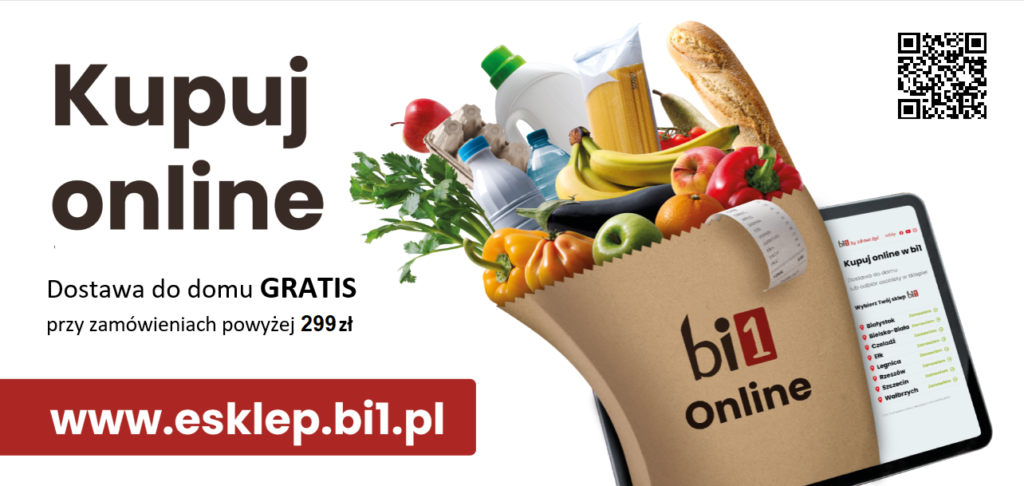 Zakupów online dokonasz na naszej stronie esklepu bez pobierania żadnej aplikacji. Wystarczy wejść na stronę esklepu bi1 dodać produkty do koszyka i wybrać odpowiedni rodzaj i godziny dostawy, a my zajmiemy się resztą! Zamówione produkty otrzymujesz od nas już spakowane w torby.